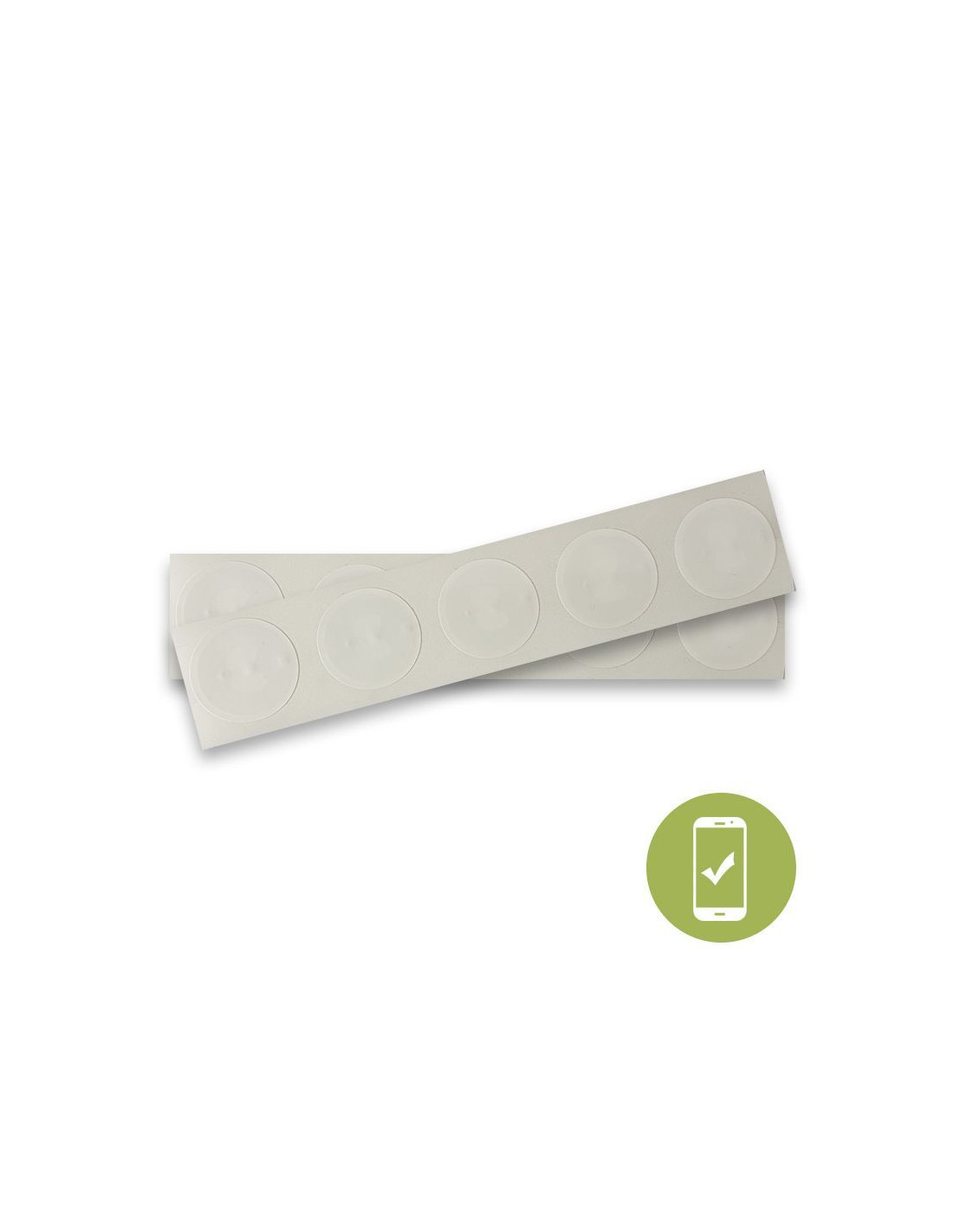 It is an adhesive NFC NTAG 216 label with a large reading distance, compatible with all kind of mobile devices. 888 byte memory. Raincoat. Supports password protection. Universal compatibility iOS, Android and Windows.