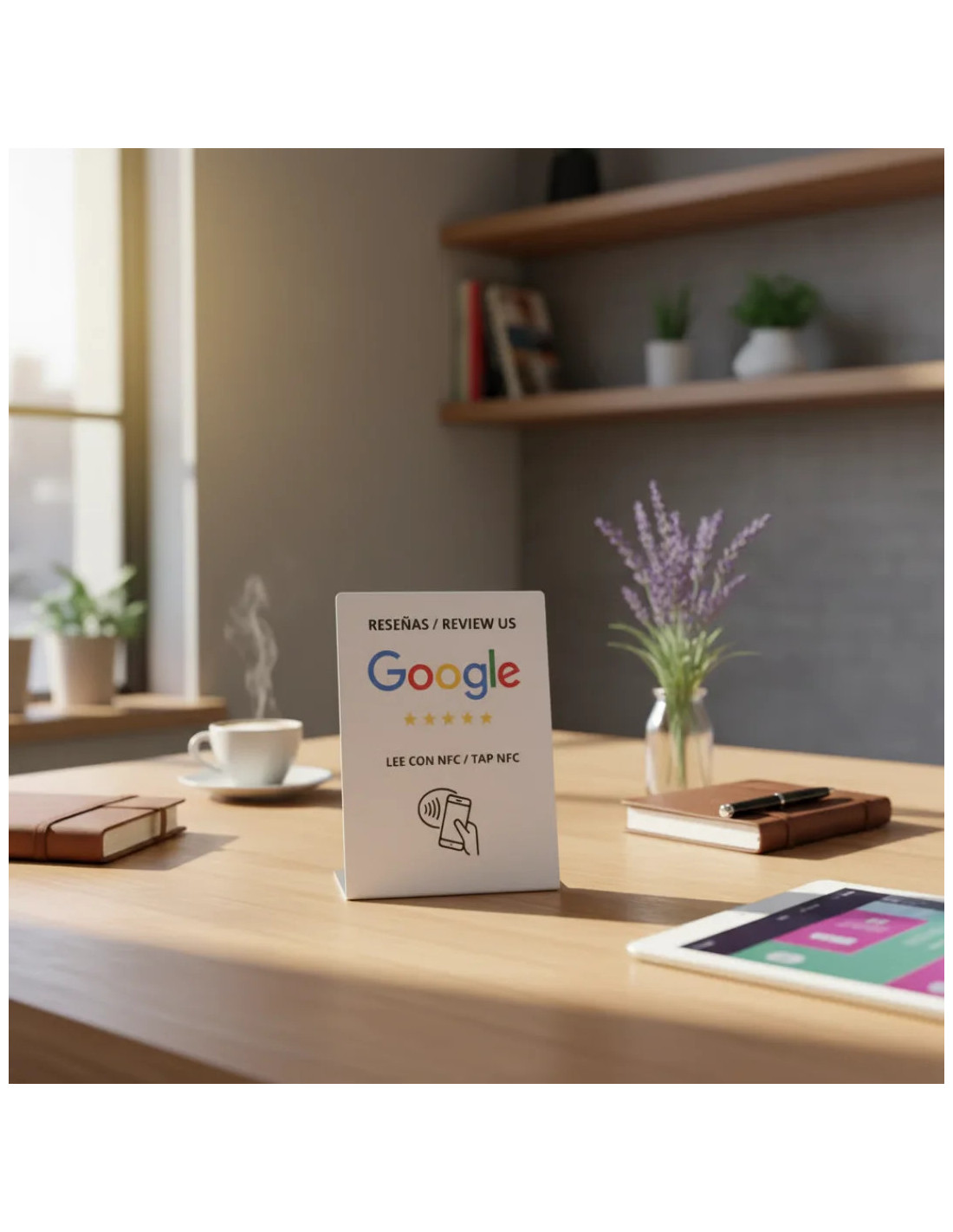 Pack reseñas Google NFC: display de sobremesa + tarjeta